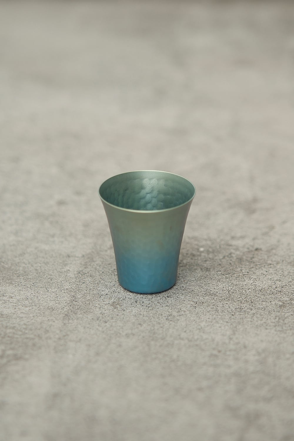 洗練されたデザインと鎚目加工が美しいチタン製ぐい呑み。チタン素材ならではの高級感と光沢が、お酒を一層引き立てます。その上、チタンの特性により発色が鮮やかで、飲み物の色合いもより美しく映えます。手になじむ形状と滑りにくい表面加工で、快適な持ち心地を実現しました。
